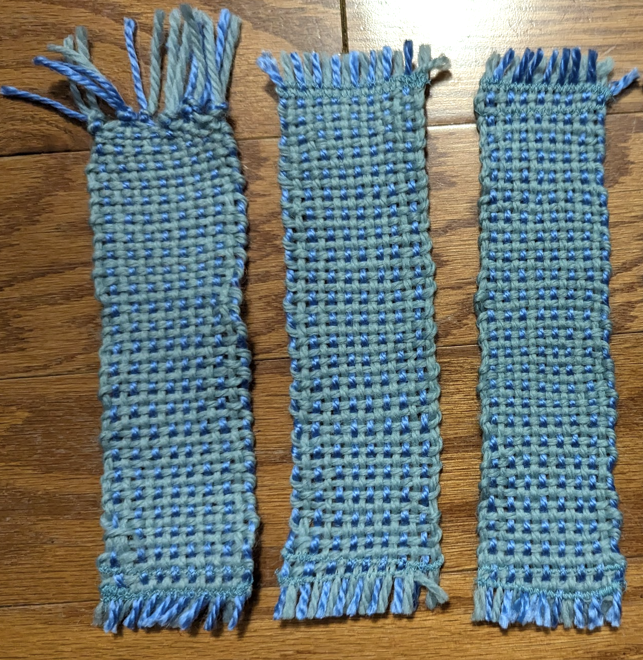 First warp on my new Leclerc floor loom, cotton with an acrylic blend in the weft. Weaving a reversible, optical pattern with an ultra soft hand.