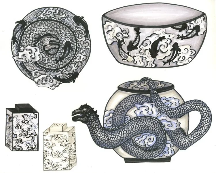 Close-up of the original doodle and the Indira design custom printed on a phone case